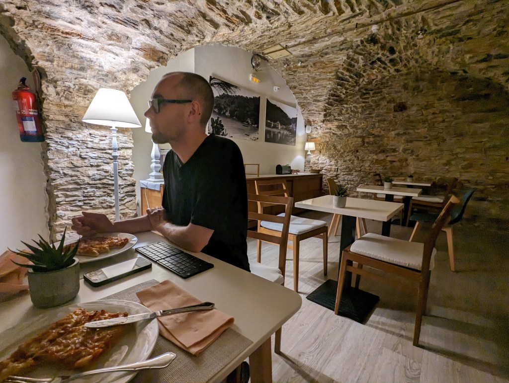 I was happy because it didn’t involve driving and parking and complex logistics. Sabrina was happy because she could use her apps and Garmin watch to optimize our route. We only got a little bit lost once, but Sabrina’s watch told her we had missed our turn, and we were soon on a terrace overlooking the Llafranca beach.