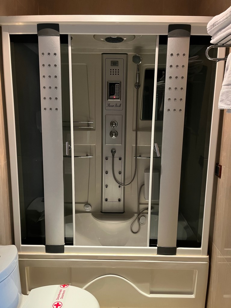 We’ve mentioned the weird shower twice now so I’ll just briefly describe it. In an otherwise calming and modern hotel room, the shower was a needlessly techy, standalone box. Among the many buttons and knobs, there were options for sideways jets, music, as well as a light setting more fitting to a disco. It was like a spaceship pod. You should have heard the yelp Ben let out when he turned into the bathroom that first time.