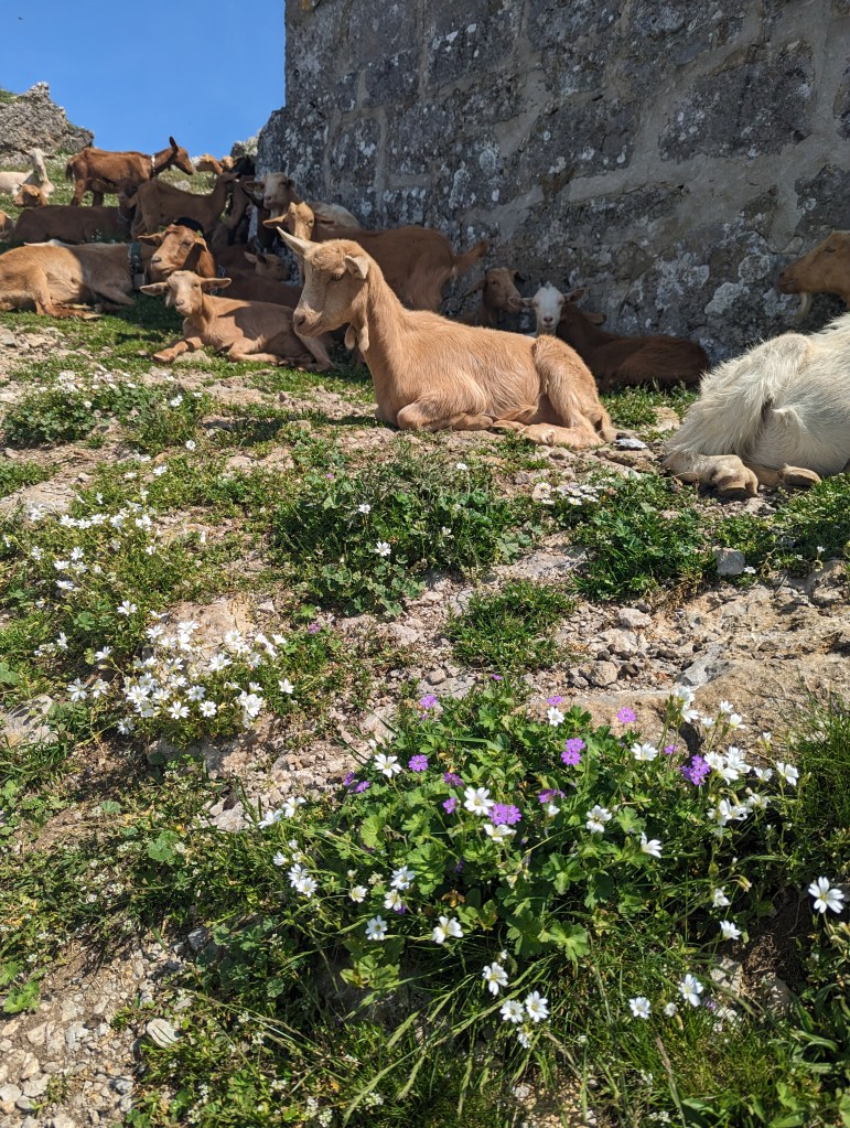 On shakier legs we carefully picked our way to a summit, where an old stone walker’s refuge and chapel had been taken over by goats. The place was buzzing. With people, sure, but even more so with flies. The goats seemed happy enough with their lot, but we soon moved on to somewhere with a bit more breeze and breathing room.