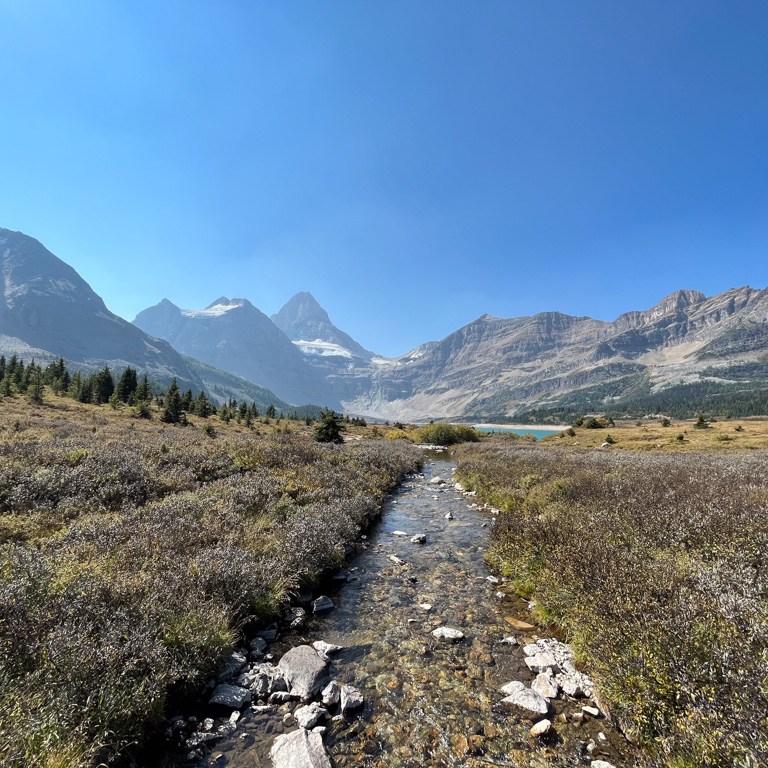 I set up camp and filter water and begin boiling for supper when the man joins me at the picnic table. He starts the family’s meal while he tells me about their trip. It is his family and some nieces and nephews. They had made it all the way to the pass today after a ten kilometre hike with their packs to camp. He is so stinkin’ proud especially of the youngest who is just 6 and never complained. Soon the woman joins him to help dehydrate ingredients for a backcountry shepherd’s pie. I inhale my own meal and leave them to a family supper.