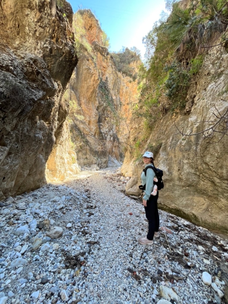 It was the right call. Frigiliana was much busier than Competa and we all shied from the congestion like feral cats. Car sickness had snuck up on mom and she took a sec to dry heave over the railing before we rallied and set our toes trailward. This hike was pleasantly different from everything we’d done thus far. Keeping initially to a dry riverbed, we wound through canyons (Los Cahorros de Rio Higueron) and over giant boulders and down concrete stairways held up seemingly by magic. We decided to add the Cruz del Pinto to our route; it wasn’t too much extra elevation or distance, it involved an alluring single-track trail, and it was right there. Step by step, we ascended. At one point, Ben and I paused at an opening in the trees, savouring the light breeze while we cheered on our tough-as-nails mothers. My heart swelled as my husband turned to me with a soft smile and said “thank you for making this trip happen.” This dream I’d had was actually realized. Here we were, despite all the late night anxieties, all the logistical minutia, hiking together in the Spanish sunshine with our real life miracle baby and her doting abuelas. The Mediterranean sea glittered in the background as Jen and Arlene reached us, smiling and huffing. Ellie woke up shortly afterward and began fussing for a carrier break so I booked it for the summit before she fully lost her shit (when I made it, a group at the top said they thought they’d heard a baby, and wow what a great job we’d done together).