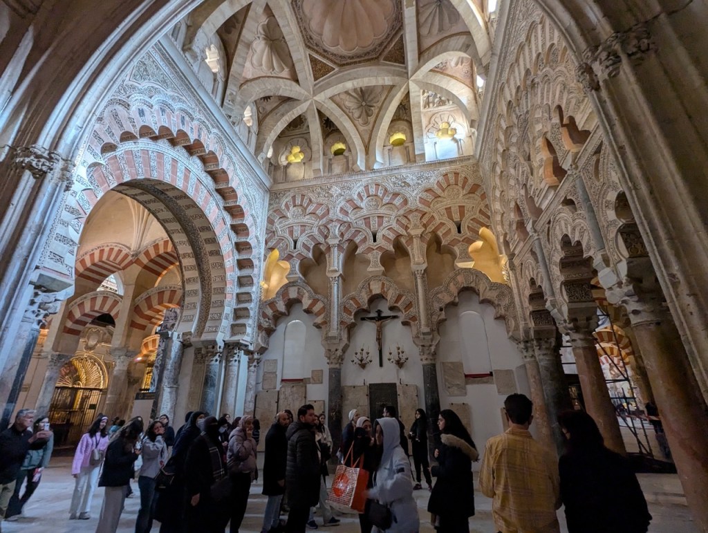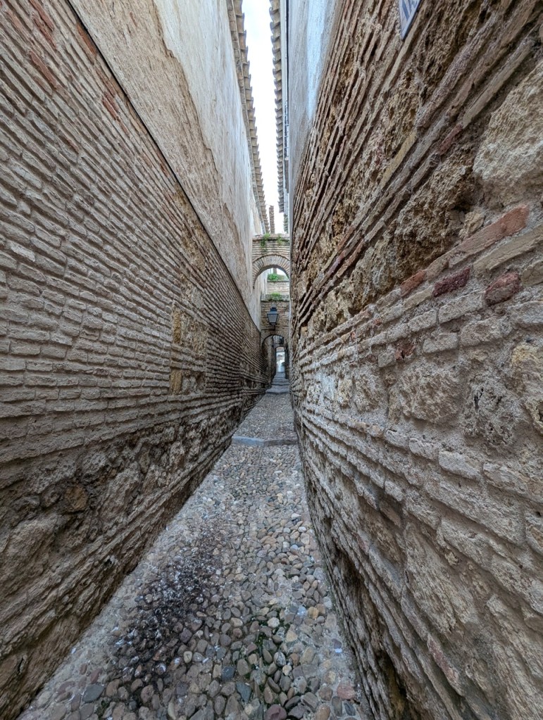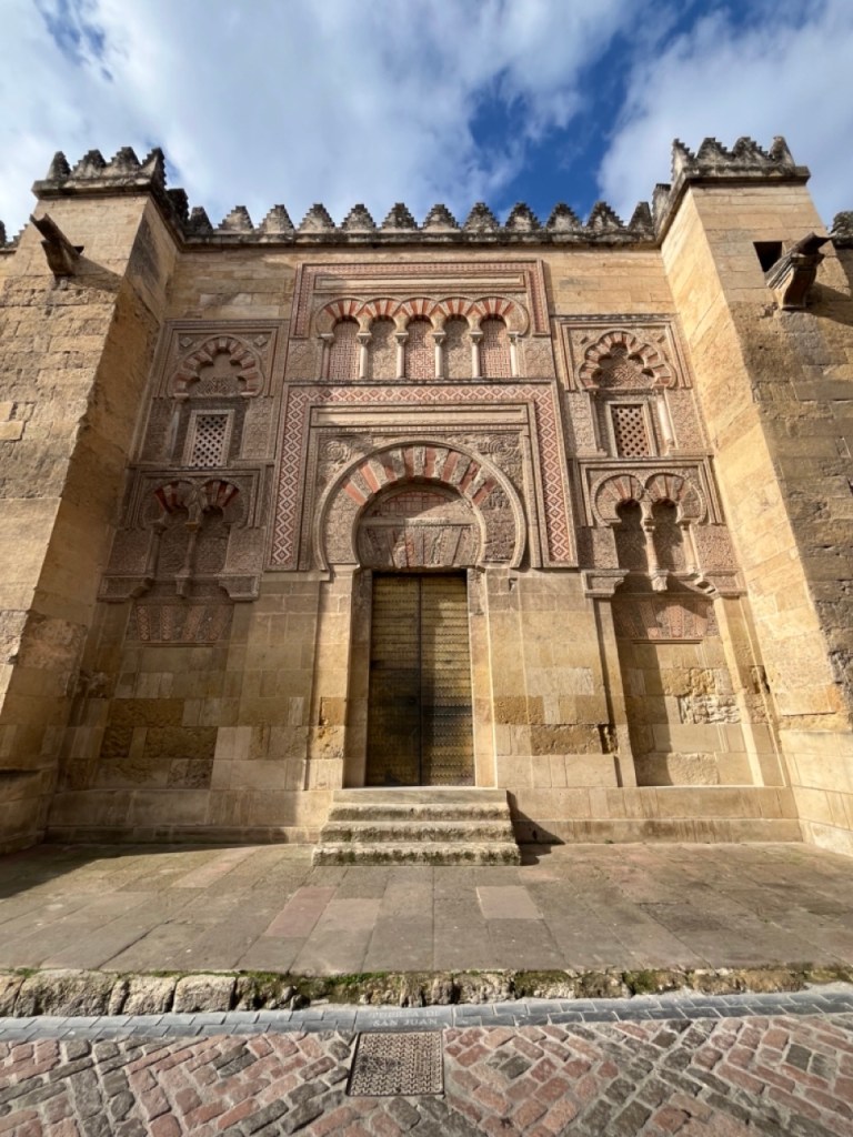Abuela W. had already seen La Mezquita twice so we split up, with los ancianos looking for a quiet place to hunker down, while we toured the Belly to the old town. I have been loudly proclaiming my distaste for cities while travelling these past few years, but here was a worthwhile exception. I was stunned by the architecture. The patterns were so intricate. Symmetrical but not in a simple way, and not just two-dimensionally. The carved patterns jutted out at interesting angles, the colours were vibrant, and inside the grassy courtyard there was a peaceful harmony despite the crowds. I felt I hadn’t fully appreciated the exterior walls, so I left Sabrina and Ellie to do a slower tour around the perimeter, stopping to just stare. For ten minutes I stood outside one gate, and everywhere I moved my eyes I saw a new detail or a new pattern. I lost track of time and had to hustle to Sabrina so we could be on time for our tickets to the inner mosque and chapel.