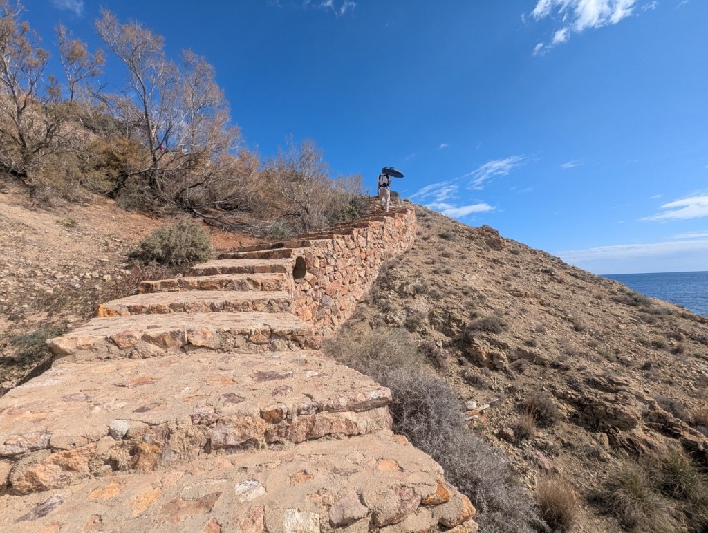 What to say about our short slog to/from the Isleta de Moro? It looked prettier from the car? That’s a lie, it was very pretty in person and certain stretches of the trail was fun and unique, but there were also sections that were hard-packed desert dust and the mercury was climbing fast. The town was busier, with groups of chic tourists roving through the square like starlings. The abuelas started back while Ben, Ellie and I zipped up to the humped Isleta for a quick pic. We got back to the beach about ten minutes after they did.