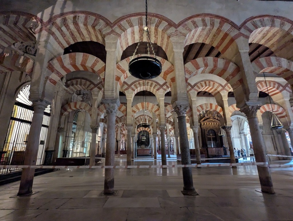 I listened to some podcasts I’d downloaded about the Mezquita’s history as we strolled the place. King Charles V’s quote (maybe accurate, maybe not) rang true for me at seeing in person the abrupt clashing of styles: “They have taken something unique in all the world and destroyed it to build something commonplace.” I loved the Islamic elements so much, and wanted more of them. The Christian section in the centre, while impressively ornate, felt garish and intrusive. The forest of pillars was astounding in their breadth, but also eventually repetitive and I wished that I could have experienced the structure in its original glory.